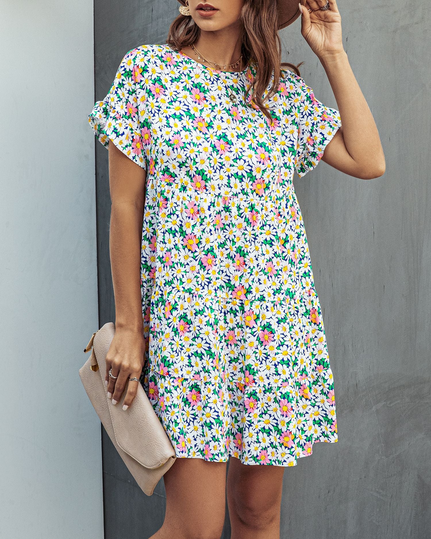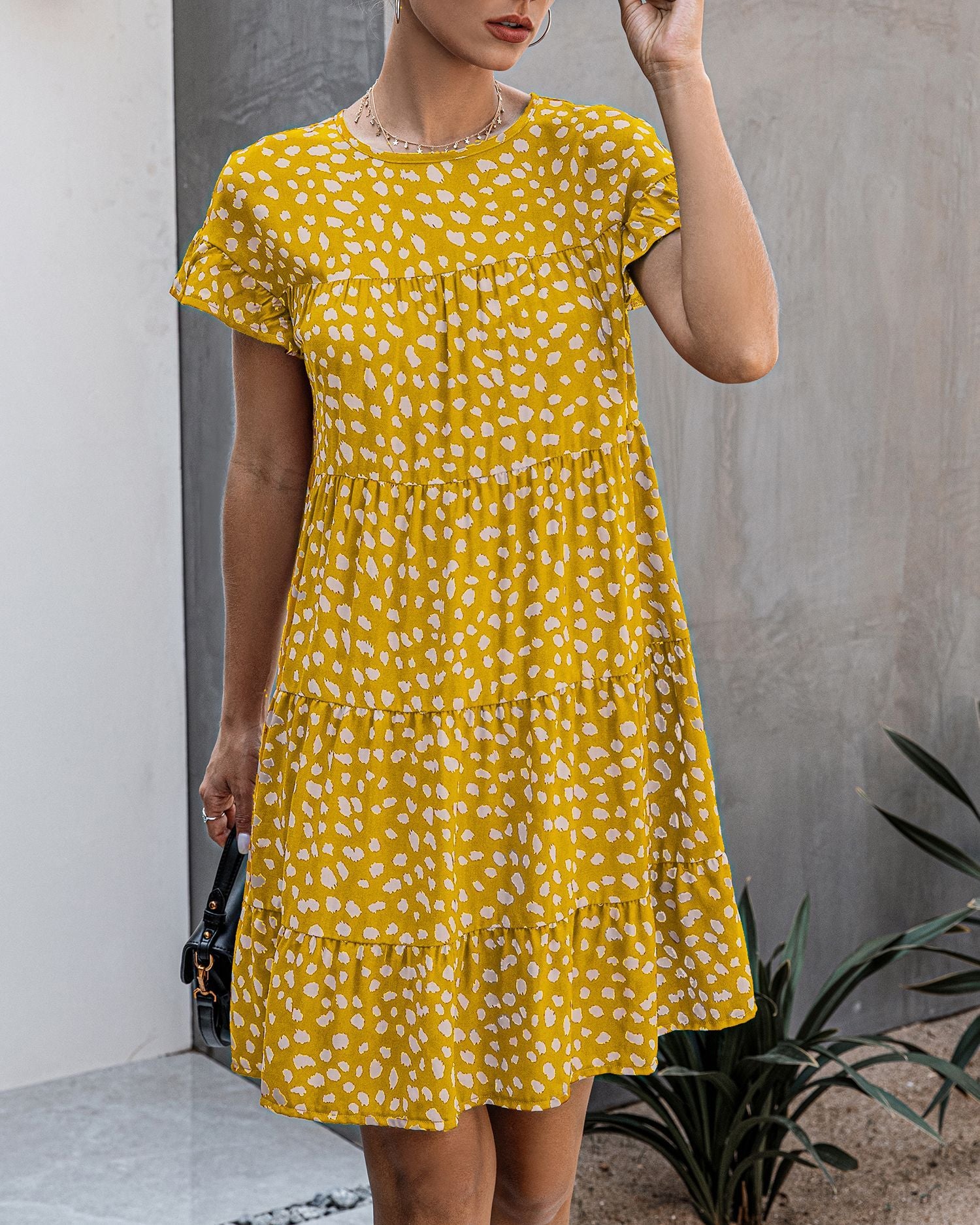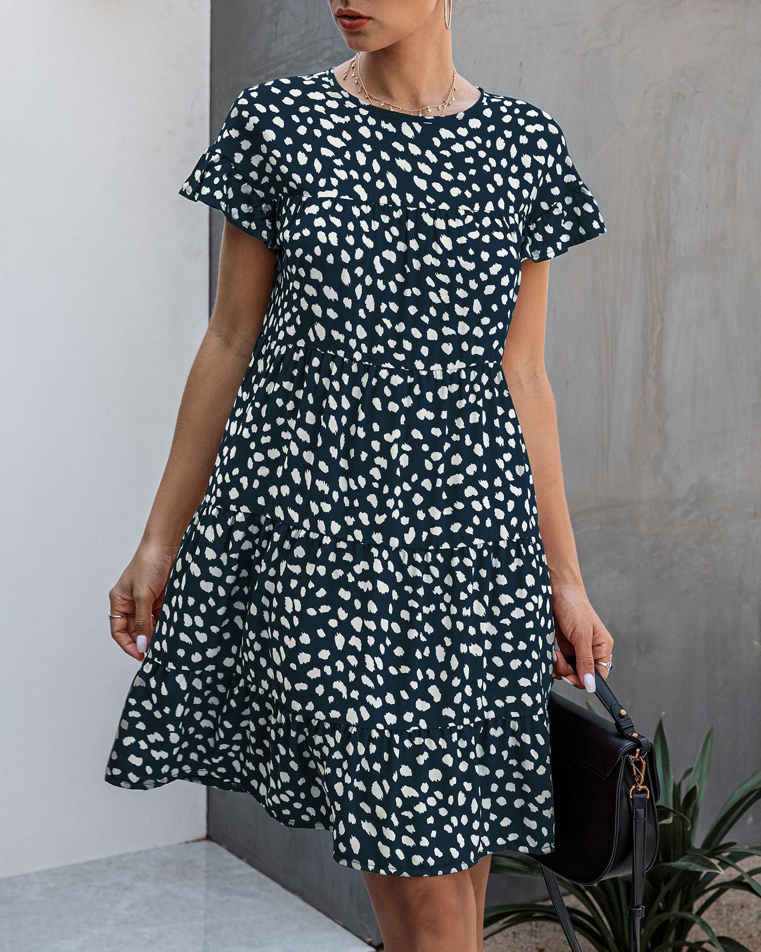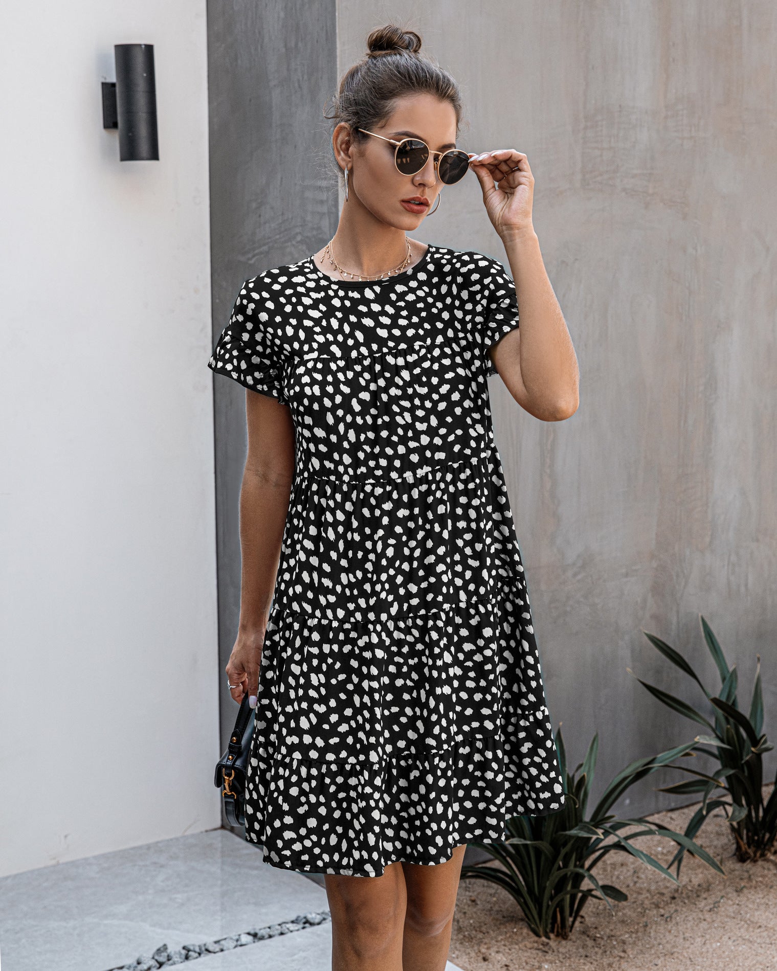 Fashion printed leopard print round neck short sleeve loose slim Dress