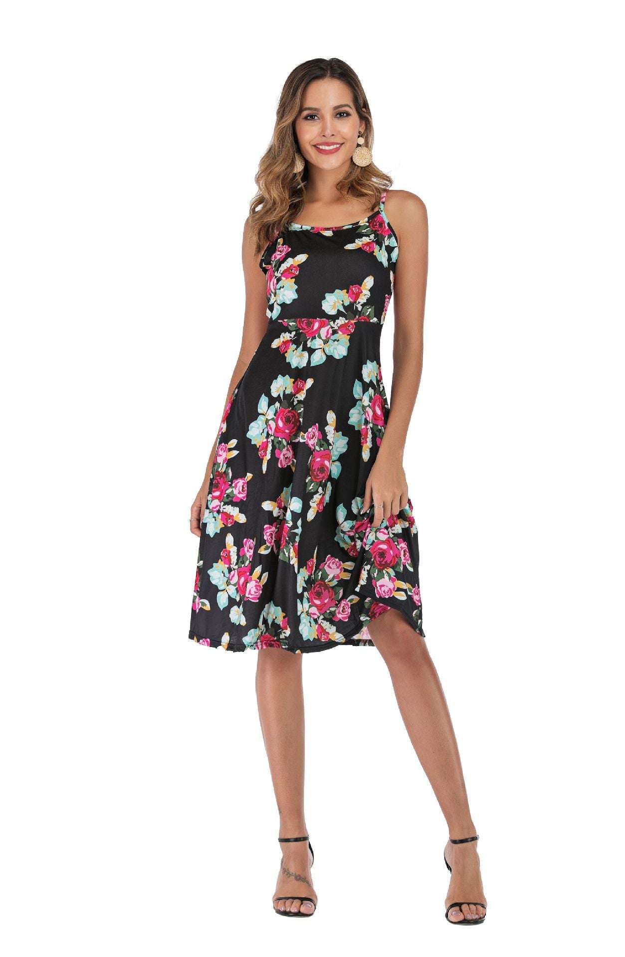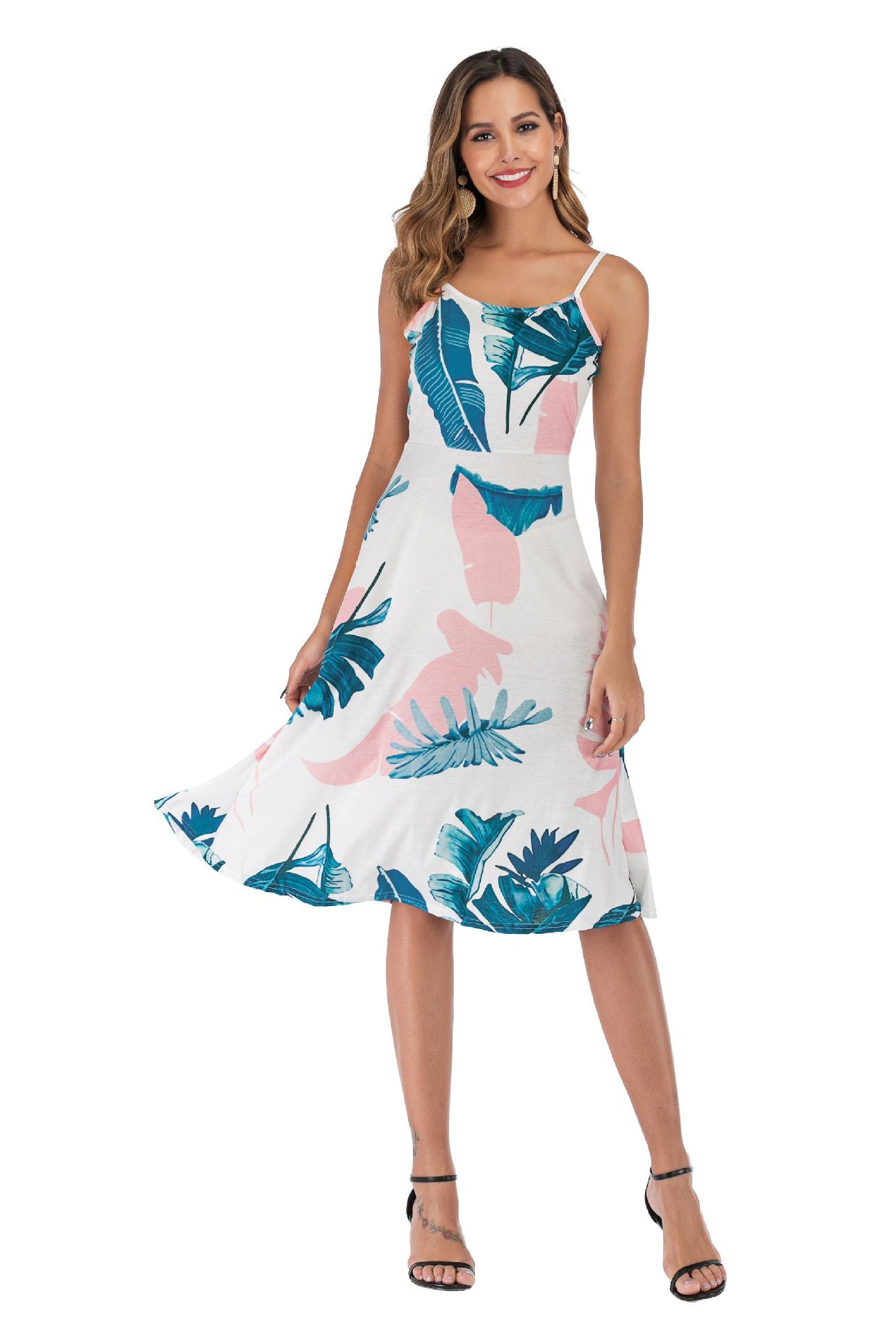 Sling print big swing Dress