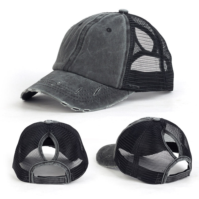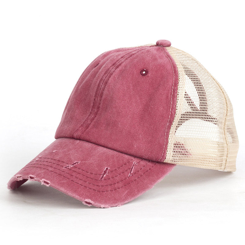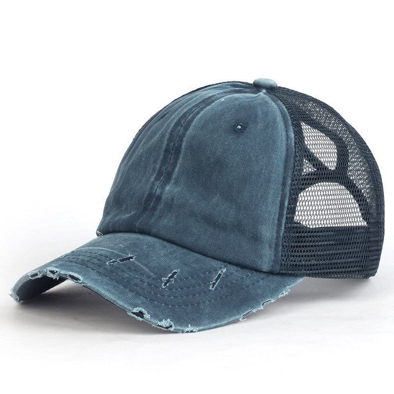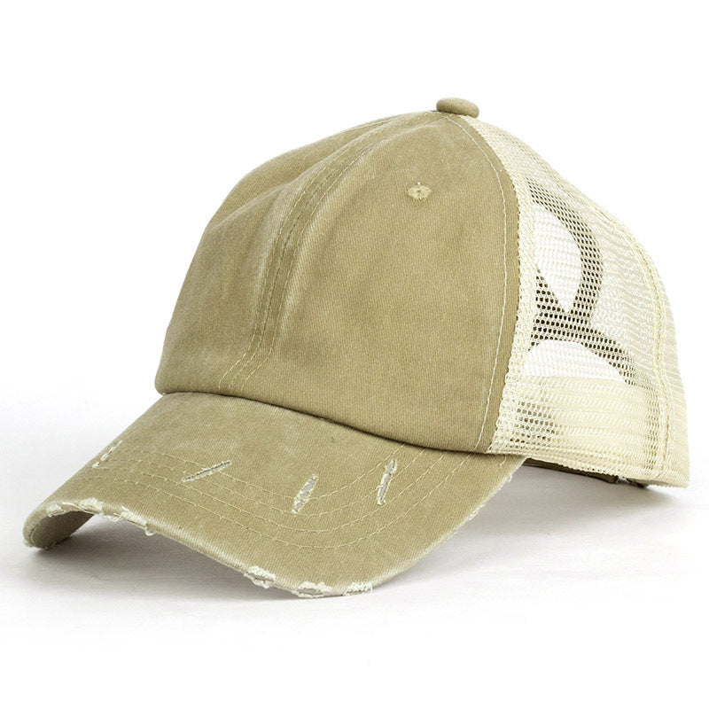 Washed sun Hat, contrasting ponytail Baseball Cap, broken edge mesh Cap